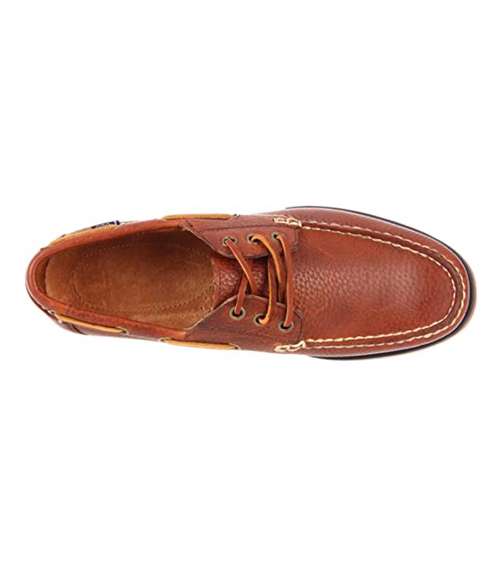 • Polo Ralph Lauren confectionne la chaussure bateau par excellence avec des coutures moc-toe traditionnelles et un laçage en cuir brut autour du col.