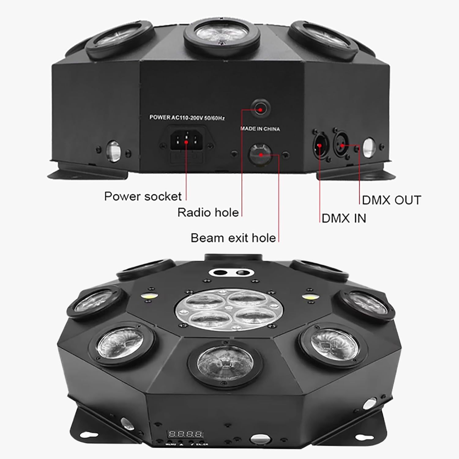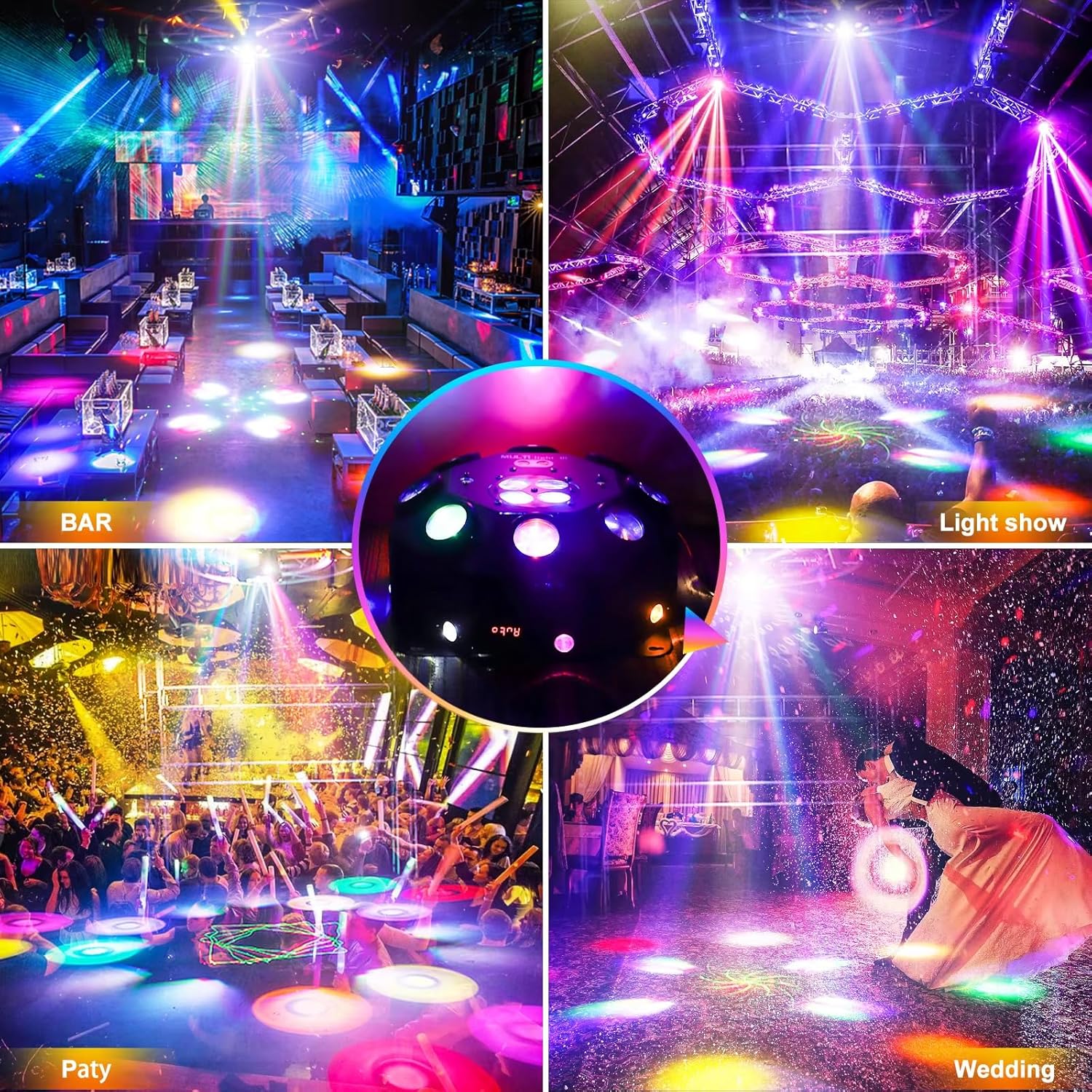 Ce projecteur de scène professionnelle comprend 8 perles LED RGBW de haute qualité qui offrent une projection lumineuse et claire, permettant une large zone de couverture. Les couleurs vives et les images nettes créées par ces lumières améliorent les effets d’éclairage globaux de votre événement ou fête.