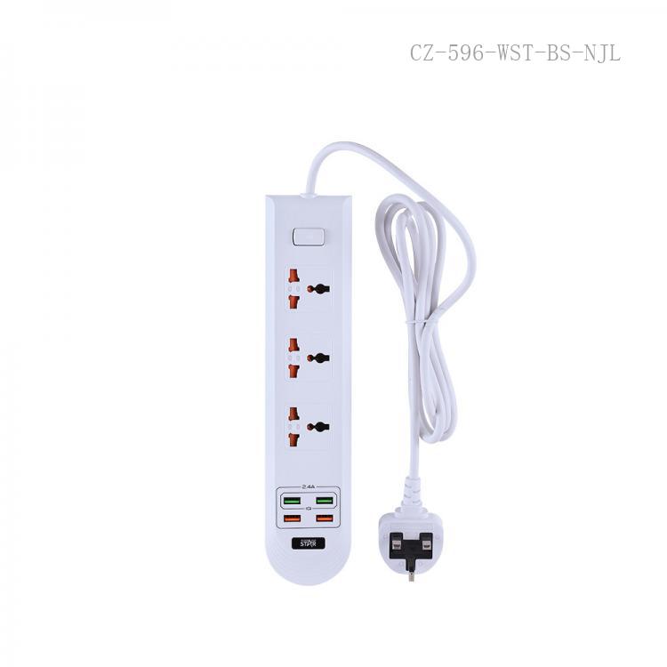 Prise Universelle Multifonctionnelle 110V-250V 10A 2500W-3000W, 3 universel + 4 USB, Fil de Cuivre Pur 2M, Blanc, Prise BS
