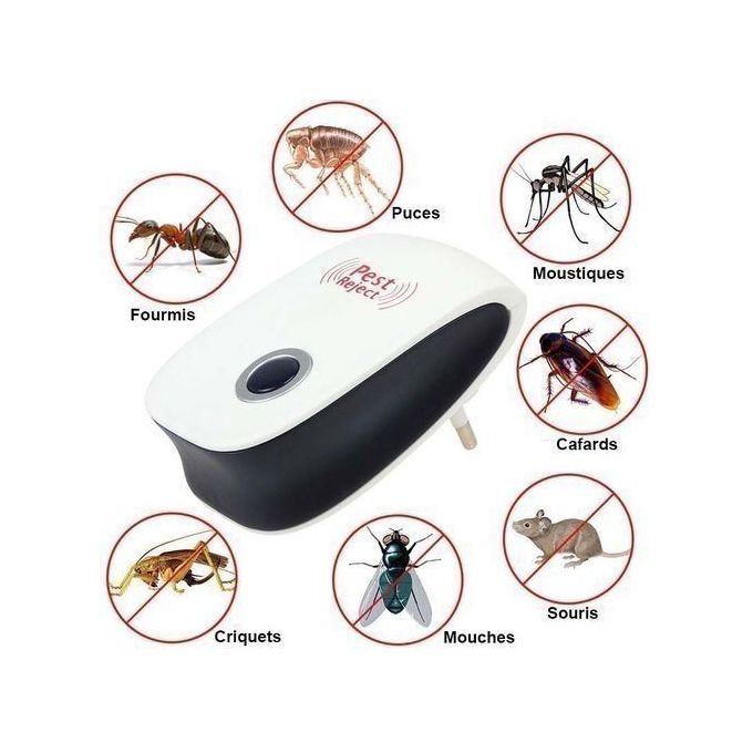 PEST REJECT est un nouvel appareil révolutionnaire qui vous permet de vous débarrasser des moustiques, cafards, souris et autres insectes de votre maison, magasin et lieu de commerce. Le répulsif ultrasonique PEST REJECT protège la maison en créant émettant des ultrasons qui repousse rongeurs et insectes indésirables. Ce dispositif émet des ultrasons seulement perçus par ces petits animaux, pour qui la zone de couverture devient impraticable. Grâce à ce procédé ingénieux, les habitant n’utilisent ni produits chimiques, ni piège, et peuvent laisser le système agir sans inquiétude ni pour les enfants, ni pour les chiens, chats, oiseaux etc. Le produit a la certification…