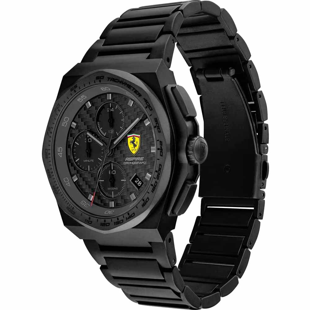 La sophistication sport-luxe et le design raffiné et élégant convergent pour offrir la collection Aspire et son caractère unique qui la distingue de la concurrence. La montre de 44 mm se caractérise par son boîtier anguleux saisissant, doté d’une lunette tachymétrique, de poussoirs en forme et d’un protège-couronne. La montre présente une finition mate élégante qui, en combinaison avec son design de cadran convaincant, caractérisé par des textures en fibre de carbone et des accents subtils de rayons de soleil, exprime un comportement furtif et offre une allure sophistiquée et sportive de luxe.