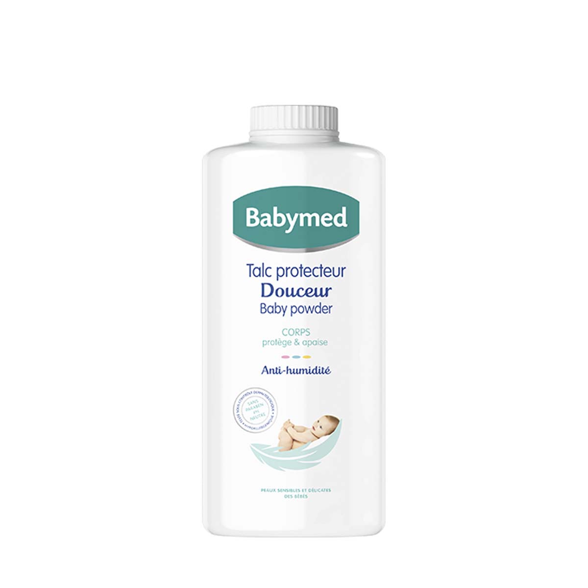 La poudre protecteur Douceur BABYMED est la poudre de toilette quotidienne qui permet à votre bébé d’avoir une peau apaisée et protégée. Enrichi en oxyde de zinc et en allantoïne, il adoucit l’épiderme sensible du nourrisson, protège les fesses de l’humidité et minimise l’apparition des phénomènes d’irritations et des érythèmes fessiers. Hypoallergénique, cette poudre est testée sous contrôle dermato-pédiatrique pour minimiser les risques d’allergies et s’adapter à la peau des bébés. SANS PARABEN – pH NEUTRE