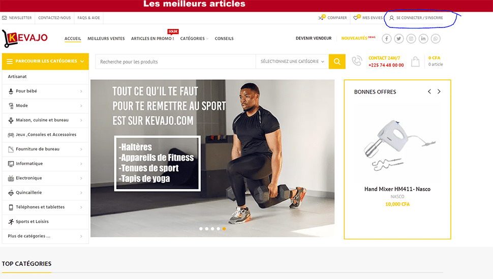 (1) – Cliquez sur connexion /Inscription