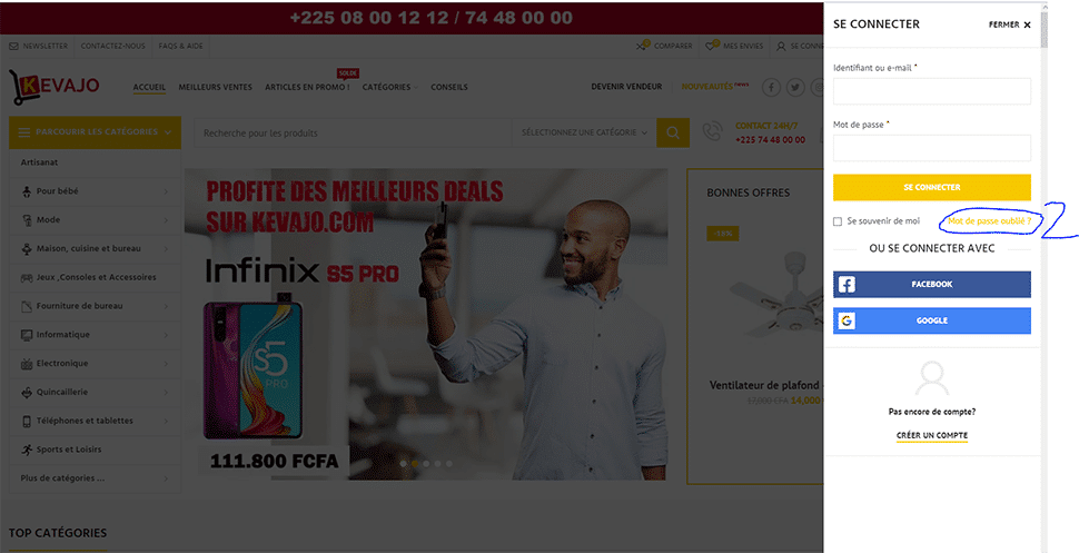 (2)-Cliquez mot de passe oublié.