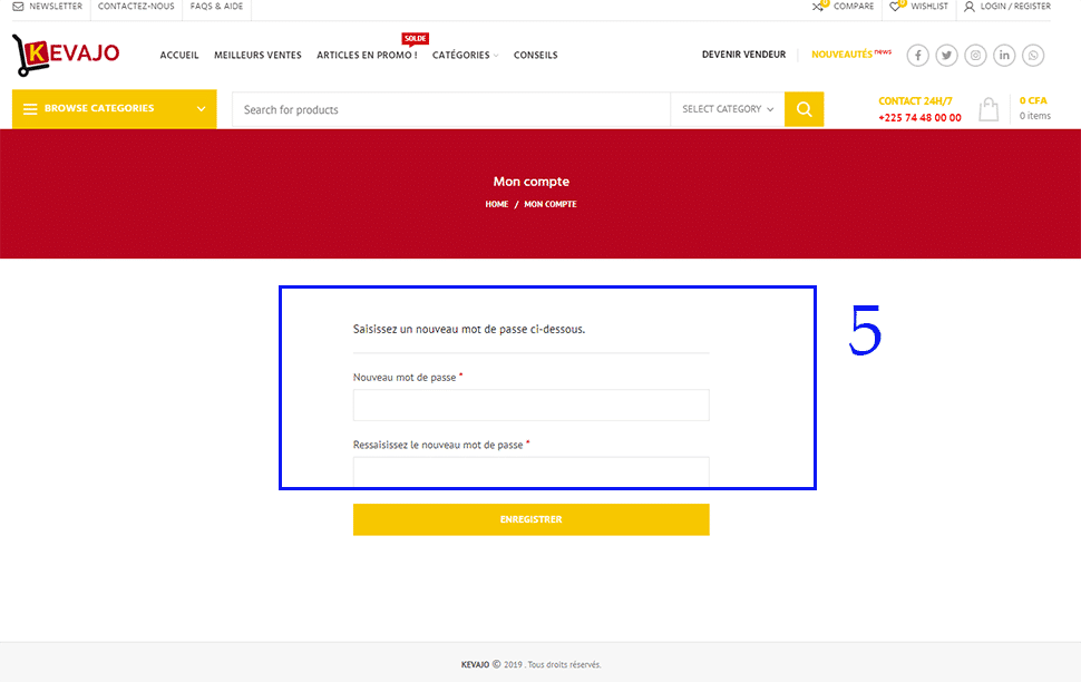 (Voir capture du mail ci-dessous)(5)- Tapez votre nouveau mot de passe , confirmez le puis validez votre choix.